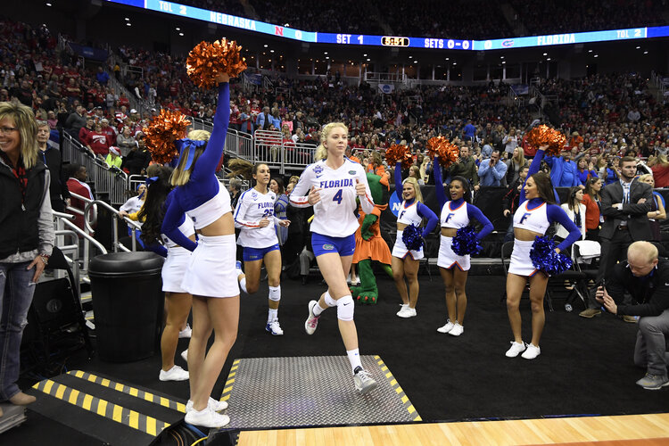 KANSAS CITY, MO – DECEMBER 16: Carli Snyder (4) of the University of Florida runs onto the court during the Division I Women’s Volleyball Championship held at Sprint Center on December 16, 2017 in Kansas City, Missouri. (Photo by Jamie Schwaberow/NCAA Photos via Getty Images)