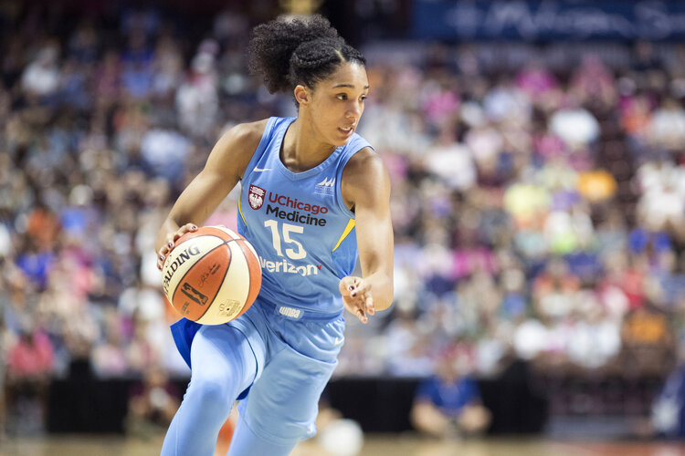 UNCASVILLE, CONNECTICUT- August 12: Gabby Williams #15 of the Chicago Sky in action during the Connecticut Sun Vs Chicago Sky, WNBA regular season game at Mohegan Sun Arena on August 12, 2018 in Uncasville, Connecticut. (Photo by Tim Clayton/Corbis via Getty Images)